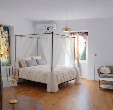 A Lot of Cahors vous propose une suite love room et une chambre au caractère affirmé, pensées dans un même esprit de raffinement et d’évasion.