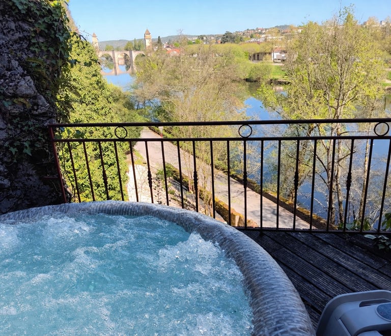 Aux beaux jours, venez buller dans le SPA sur le rooftop face au pont Valentré.