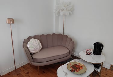Canapé et table basse. TV 40 pouces : Canal+, Youtube premium (sans pub), Amazon Prime, Disney+ et Netflix.