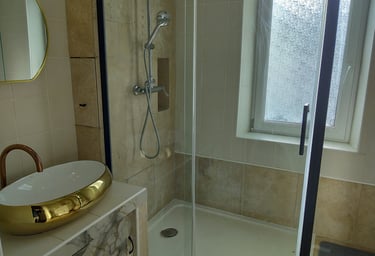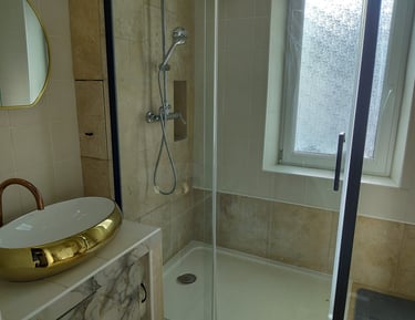 Chambre spacieuse de 20m² avec salle d'eau attenante de 6m² (douche et lavabo) + WC.