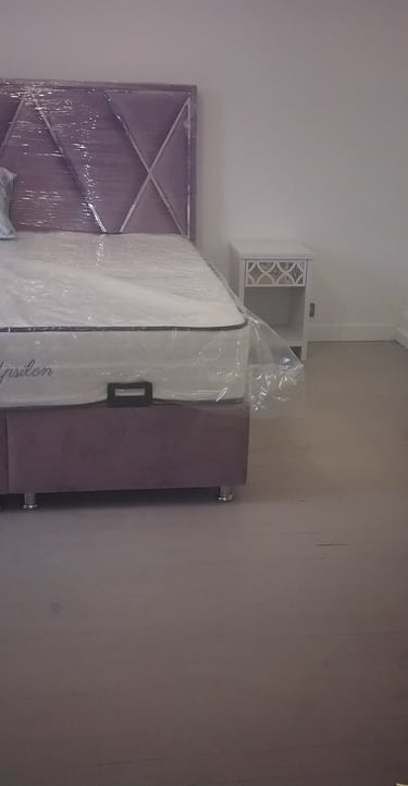 Grand lit avec coffre et placard.