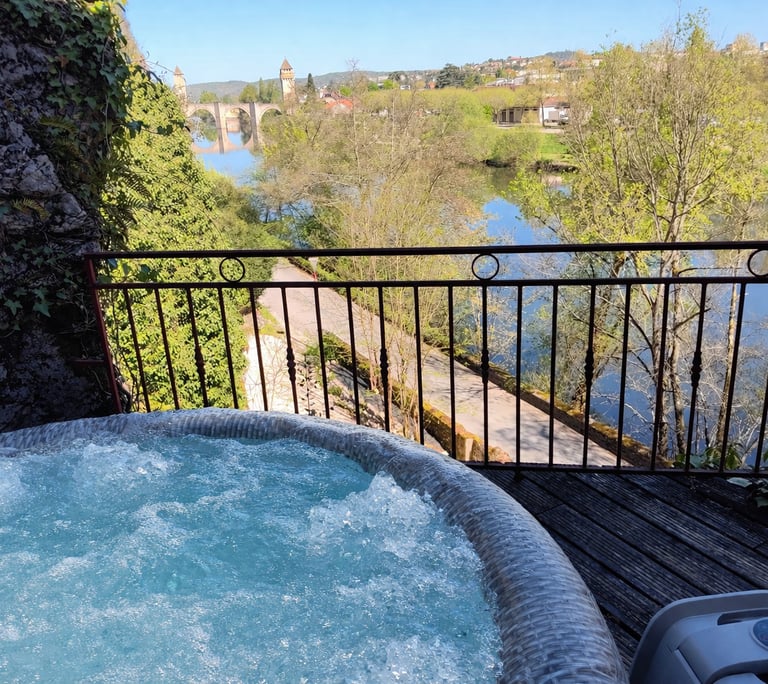 Aux beaux jours, venez buller dans le SPA sur le rooftop face au pont Valentré.